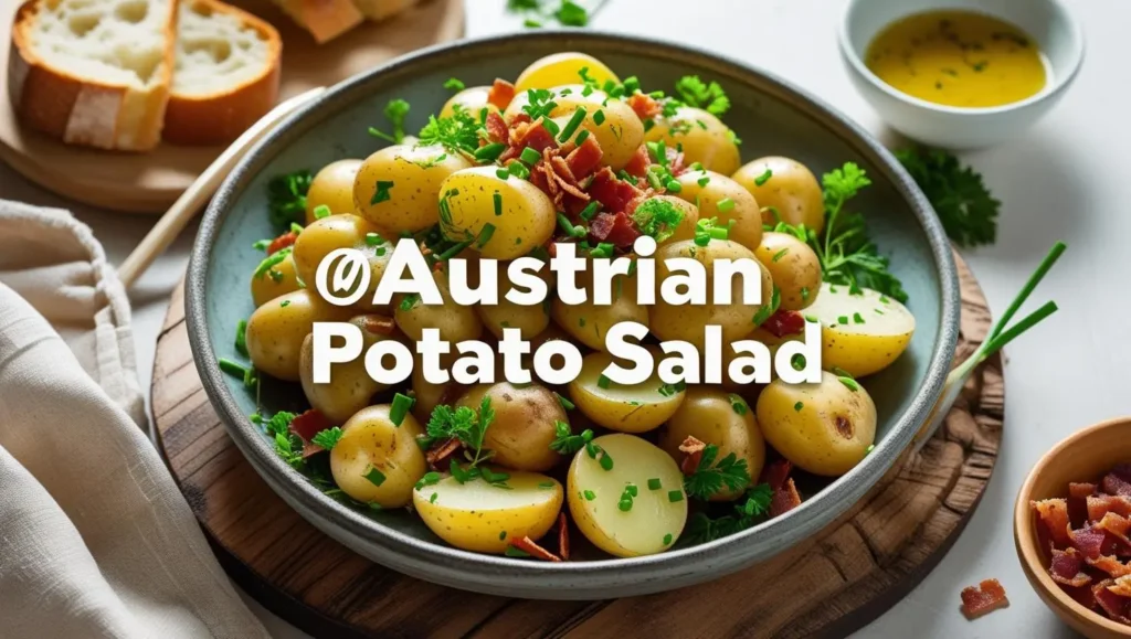 Picture yourself at a sturdy wooden table in a small Austrian kitchen, relaxing while the scent of tangy vinegar and fresh herbs drifts past. You lift your fork and realize you are not just eating; you are tasting family memories that stretch long before you. This Austrian potato salad recipe, or Erdäpfelsalat, is that dish. It warms the belly and the spirit, handing down comfort from one generation to the next. Whether you grew up with it or are trying it for the first time, each bite feels like an old, friendly hug right on your plate.